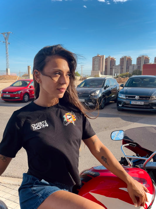 Cada prenda destaca nuestro logotipo con la silueta del circuito y la bandera de su comunidad autónoma de fondo.